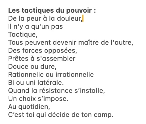 Ainsi, ma proposition graphique est un livret, qui contient des textes et 3 photos sur le pouvoir. Ce livret est une exploration poétique et visuelle de ce qu’est le pouvoir pour moi : une force omniprésente, ambivalente, qui invite à la réflexion et à l’émancipation.