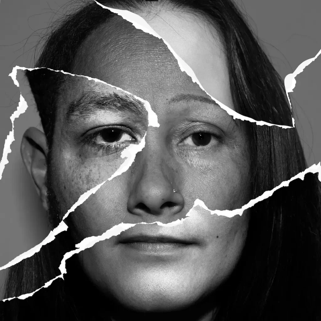 Les photographies en noir et blanc sont marquées par des déchirures, évoquant la fragmentation et la perte d’identité. Chaque image dialogue avec un texte précis, sans l’illustrer directement. Elles fonctionnent seules, mais prennent tout leur sens ensemble.