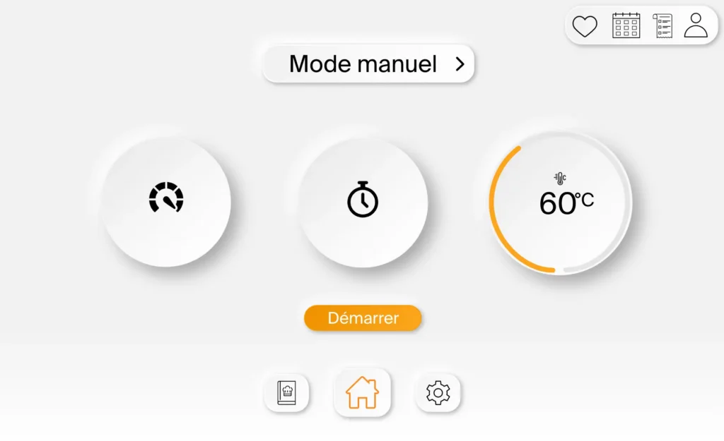 Face à des interfaces de robots-cuiseurs souvent bruyantes, j’ai cherché à proposer une expérience épurée, calme, intuitive et accessible.