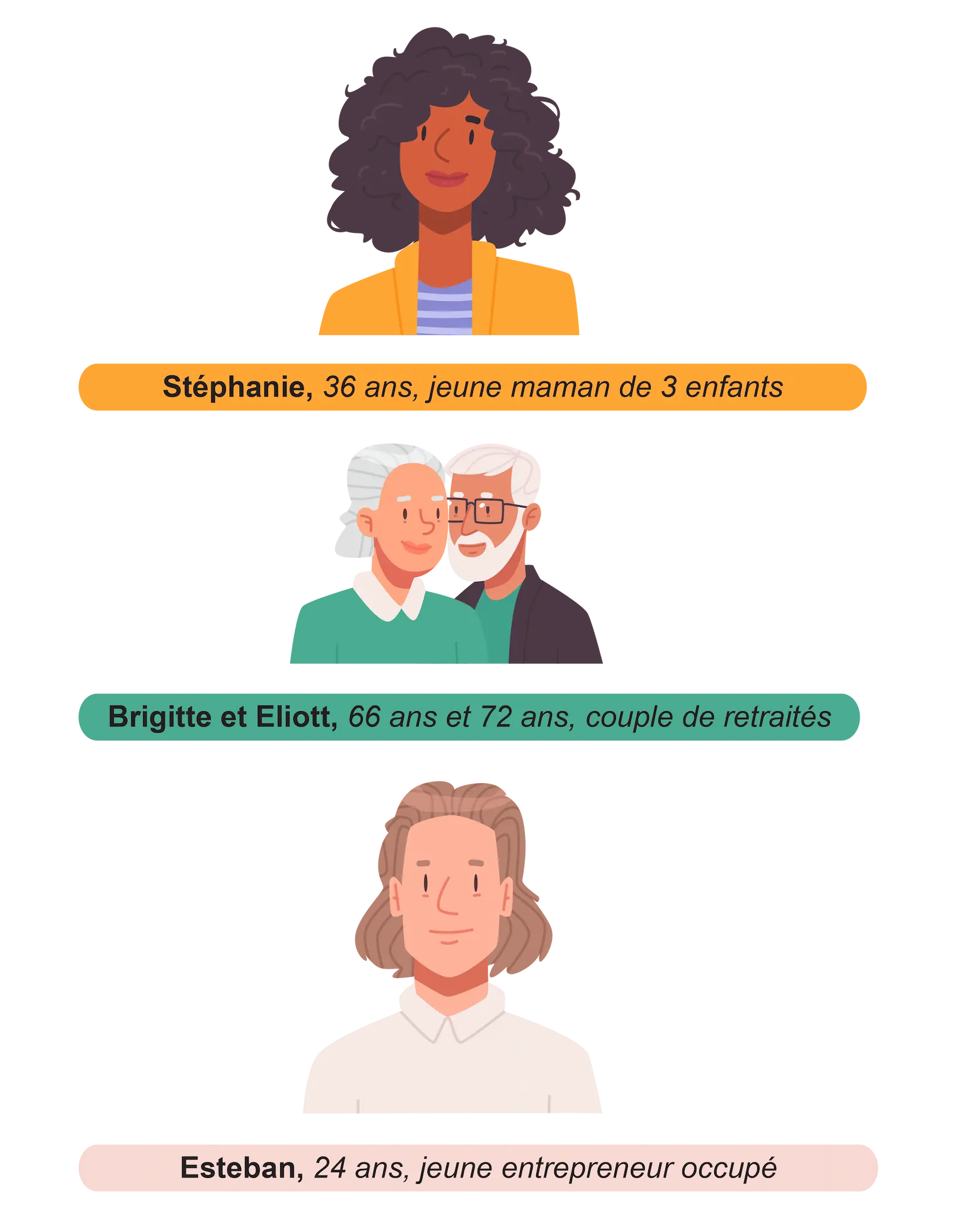 Puis, j’ai créer 3 potentiels personas pour identifier la base de mon concept